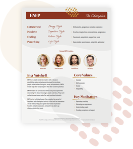 • Short Personality type profiles for all 16 types.